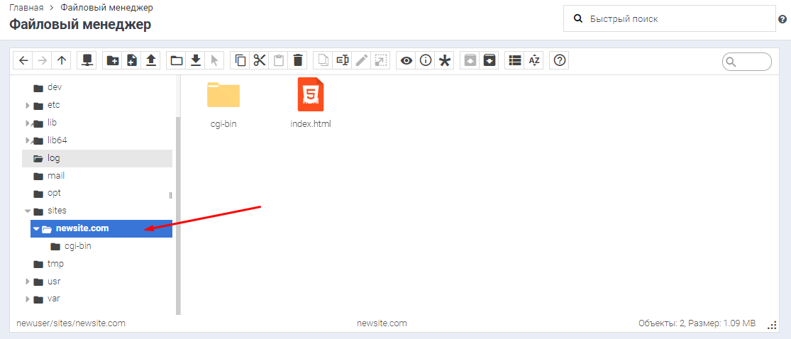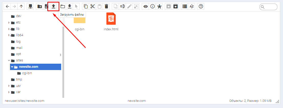 Откройте папку сайта, куда необходимо загрузить файлы: