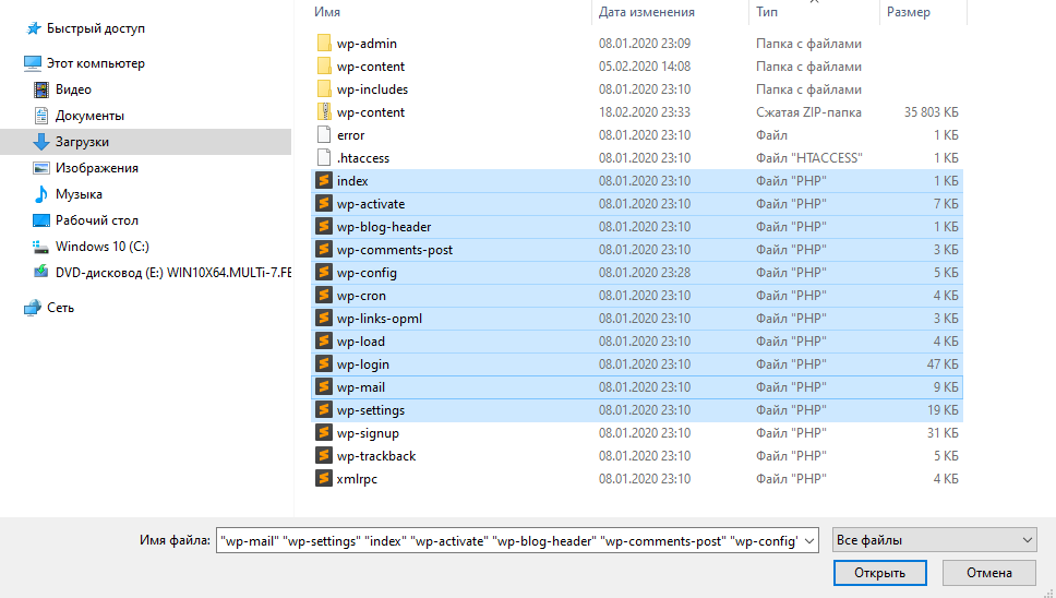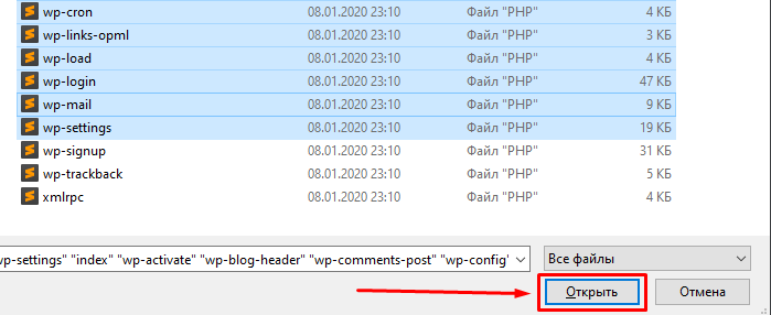 Для загрузки нескольких файлов удерживайте клавишу CTRL и выберите нужные файлы: