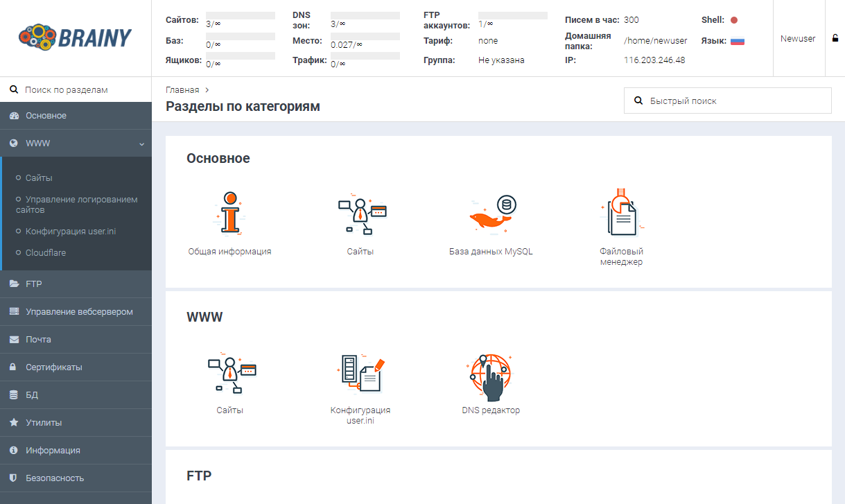 В панели управления BrainyCP можно быстро установить CMS с помощью автоустановщика.