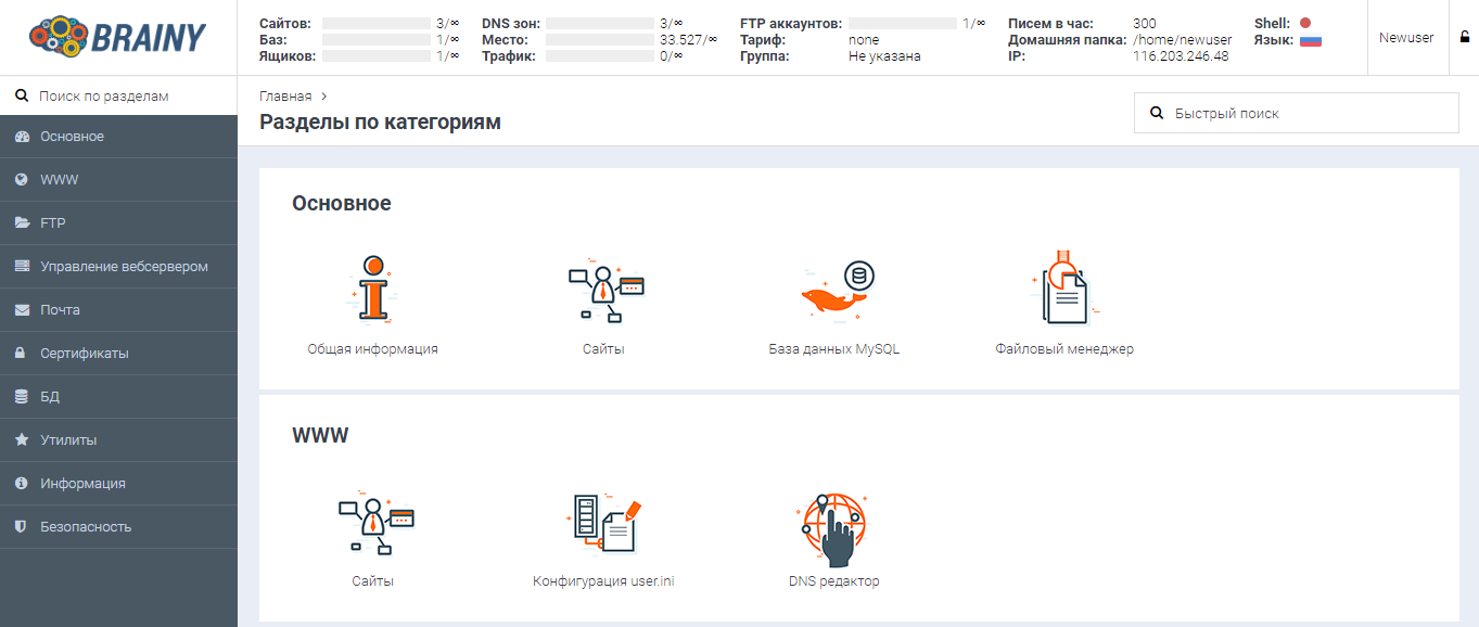 В панели управления BrainyCP можно установить бесплатный SSL сертификат Let’s Encrypt для сайта.