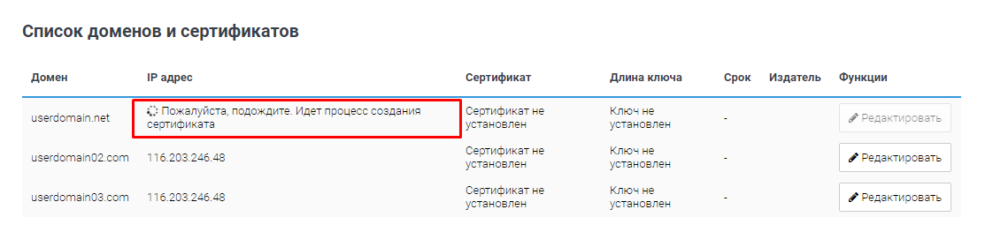 Дождитесь завершения установки сертификата (обычно 2–10 минут):