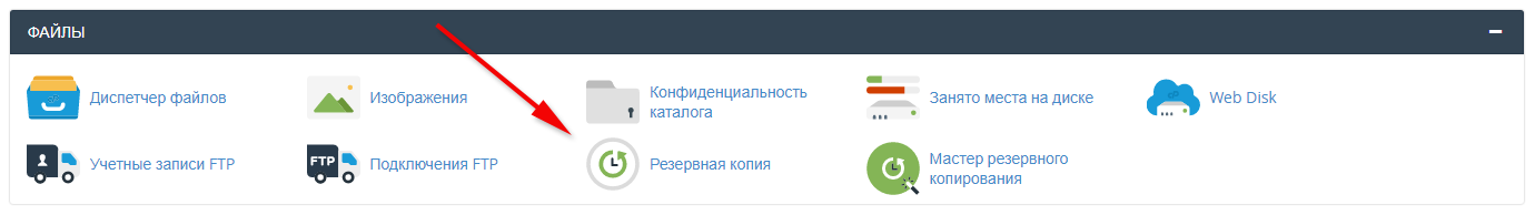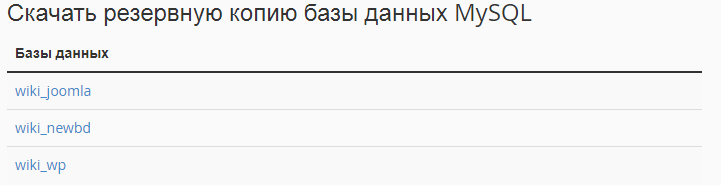 В блоке Скачать резервную копию базы данных MySQL нажмите на имя нужной базы данных.