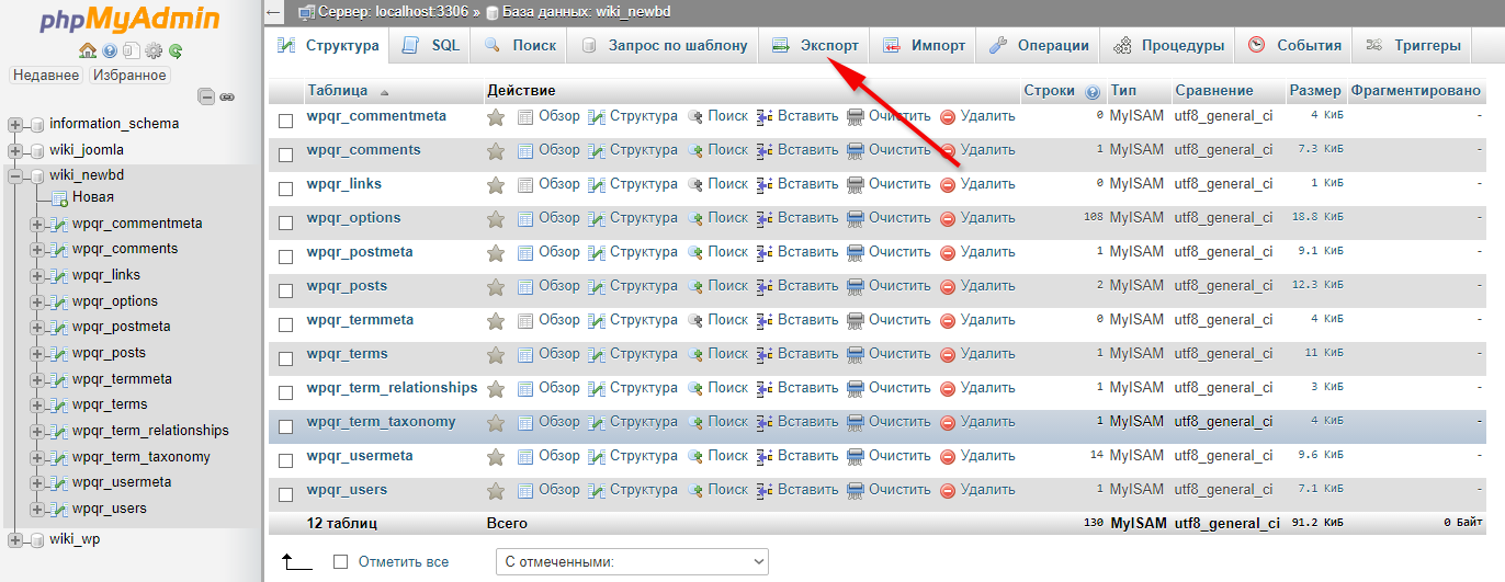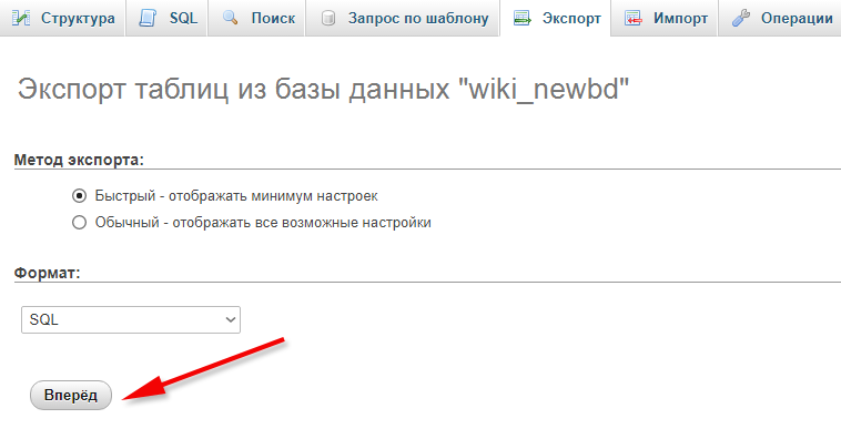 Экспорт базы данных в cPanel можно выполнить двумя способами.