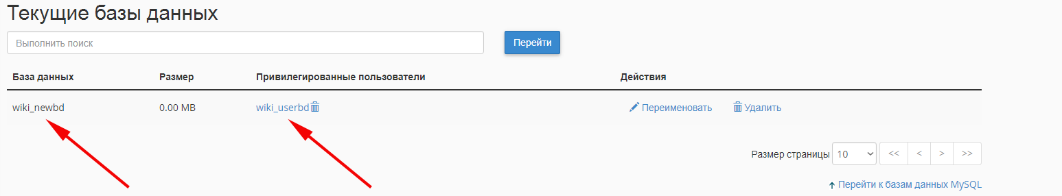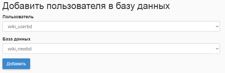 Внизу страницы выберите базу данных и пользователя, затем нажмите Добавить.