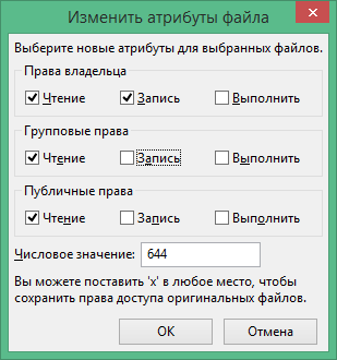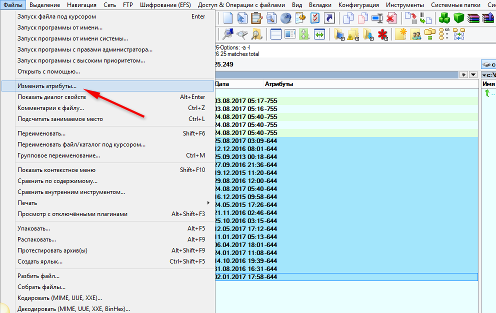 Выделите файлы и выберите Файлы → Изменить атрибуты.