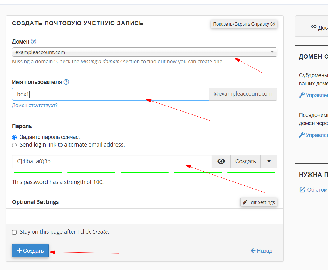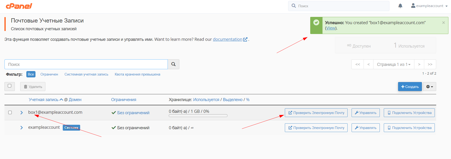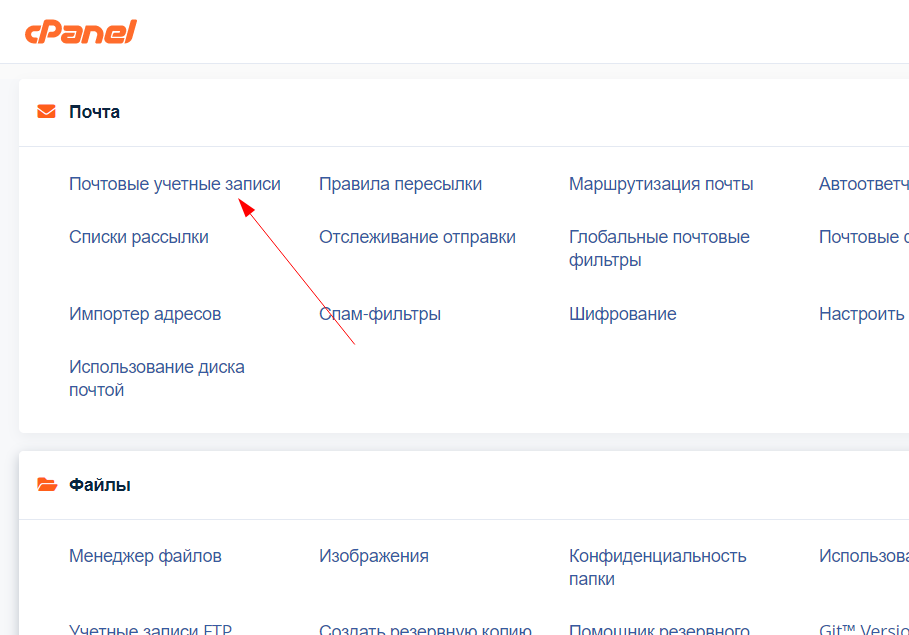 В cPanel можно быстро создать почтовый ящик для вашего домена.