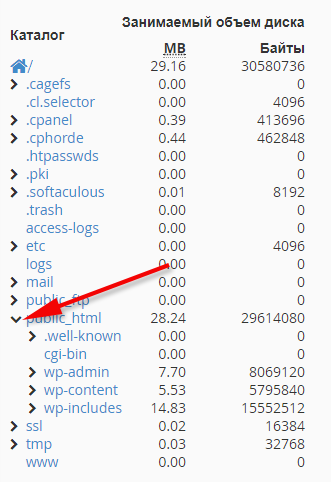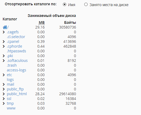 Как посмотреть занятое дисковое пространство в cPanel