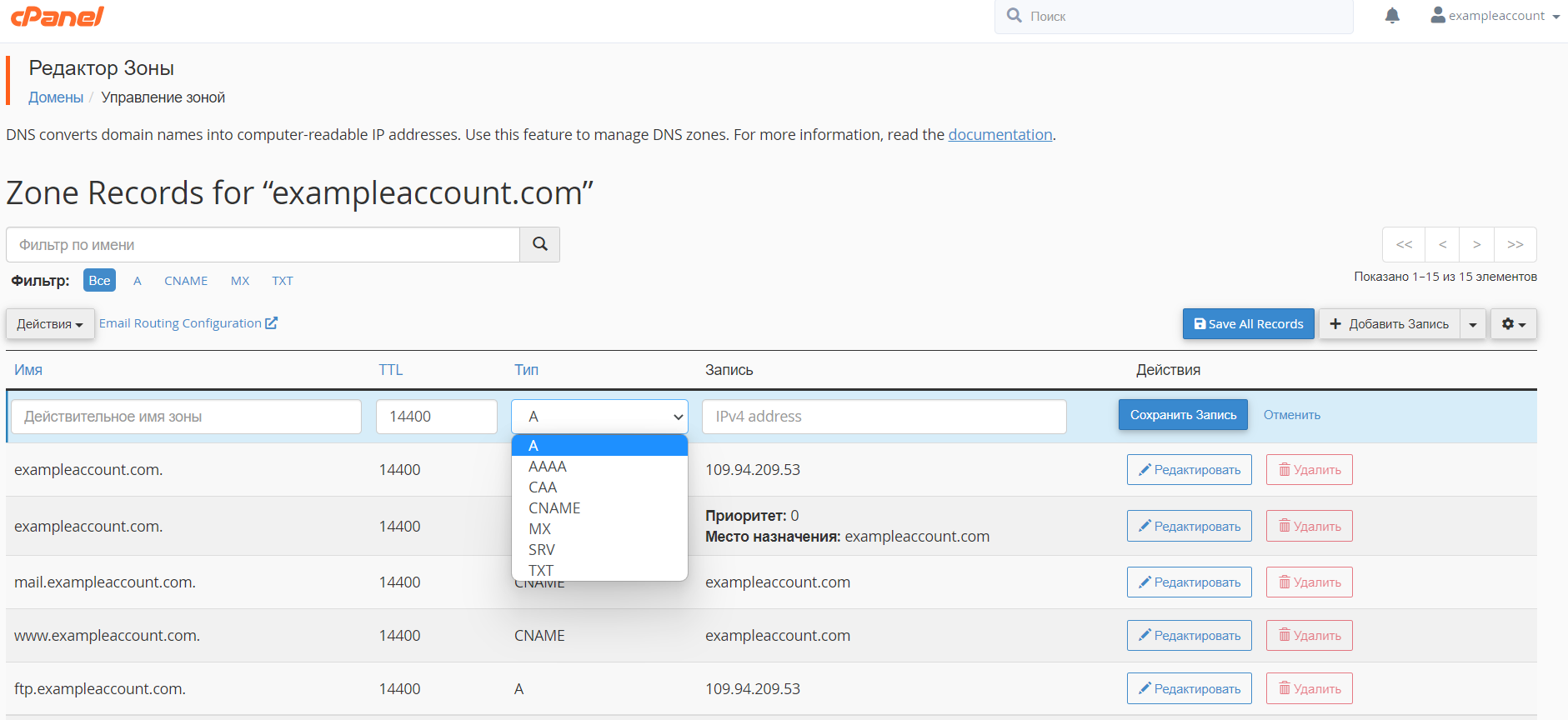 Как управлять DNS-записями (Zone Editor) в cPanel