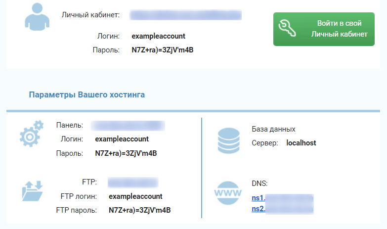 После заказа хостинга на ваш email приходит письмо с данными доступа.