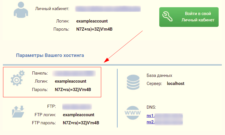 Для входа в панель управления используйте ссылку и данные из письма.
