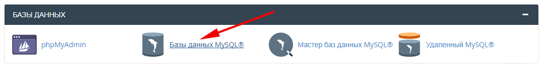 Перейдите в панель управления и откройте раздел Базы данных MySQL.