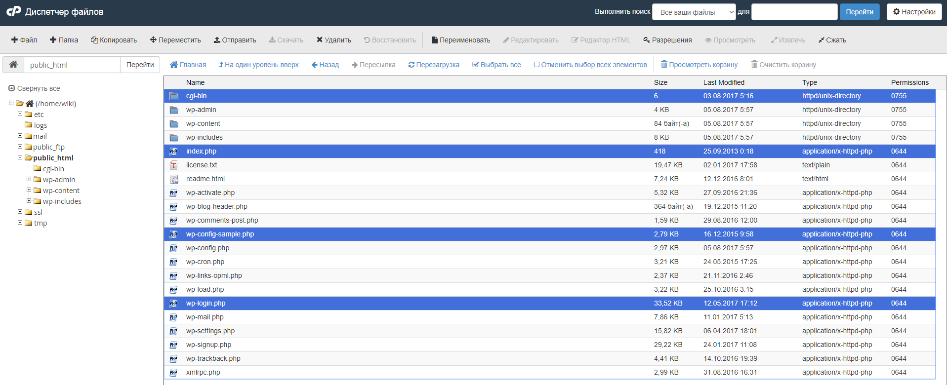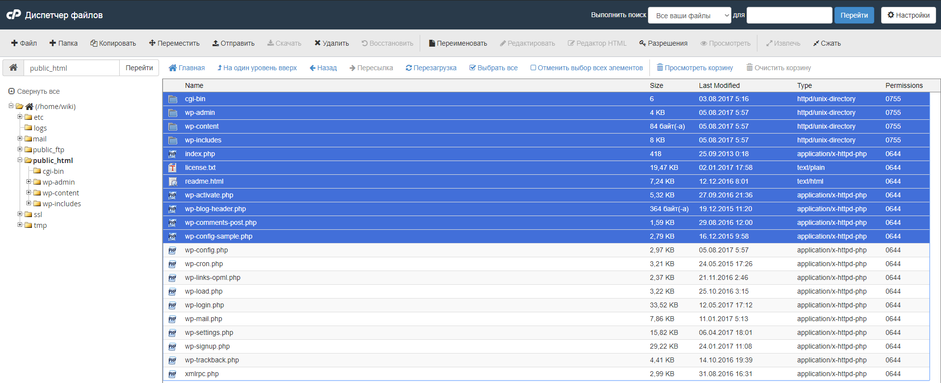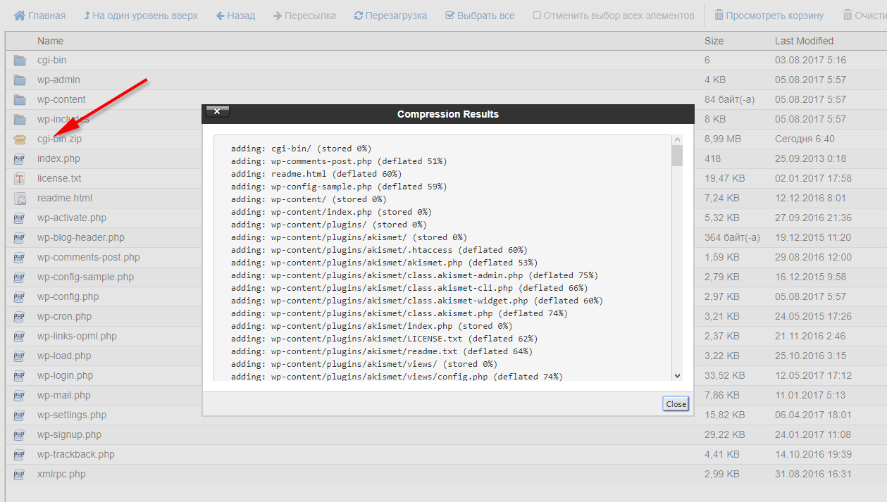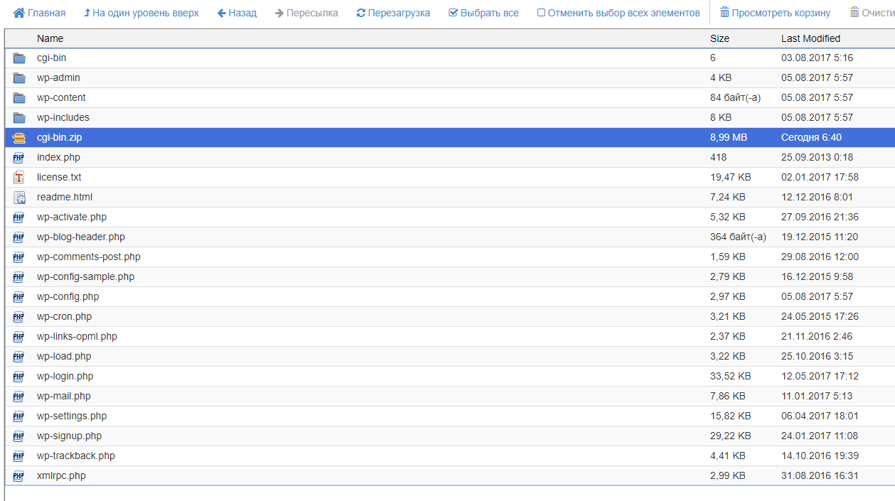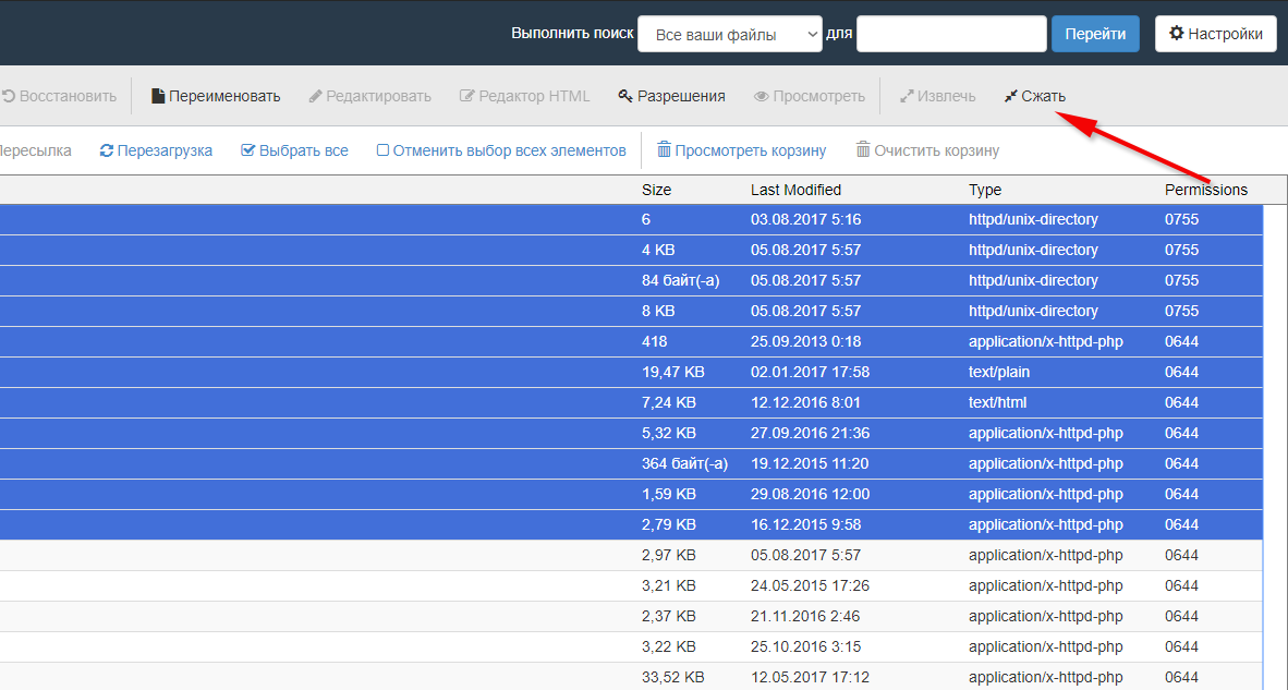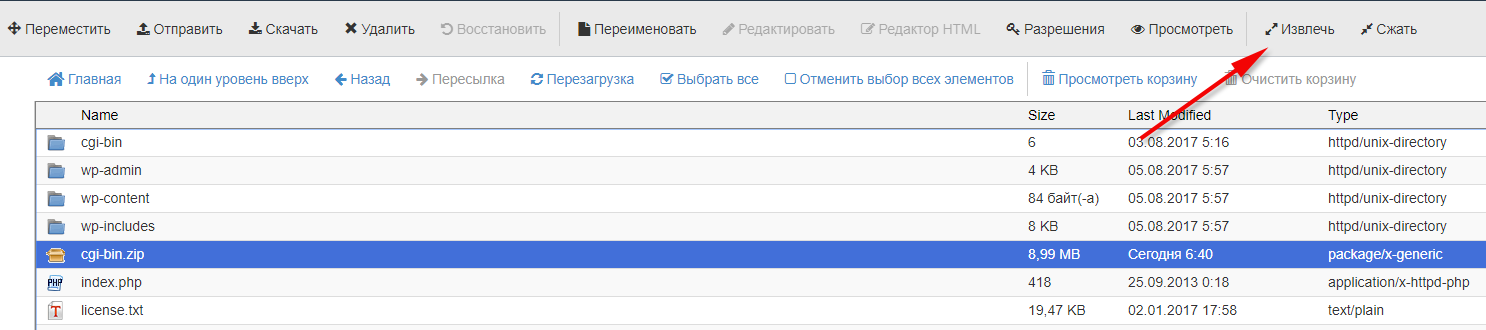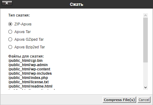 Менеджер файлов в cPanel: архивирование и разархивирование файлов