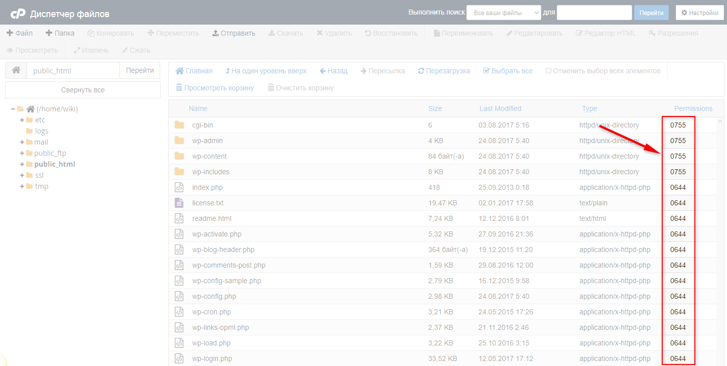 - файлы — 644