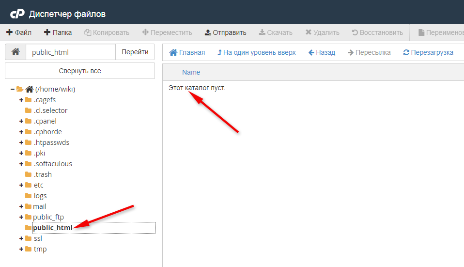 Проверьте, загружены ли файлы сайта в директорию public_html.