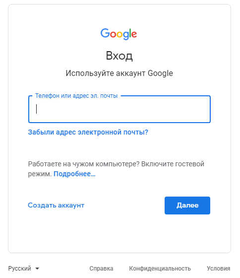 Авторизуйтесь в аккаунте Google или создайте новый.