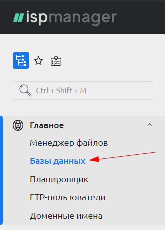 Для создания новой базы данных перейдите в раздел Базы данных в панели управления ISPmanager.