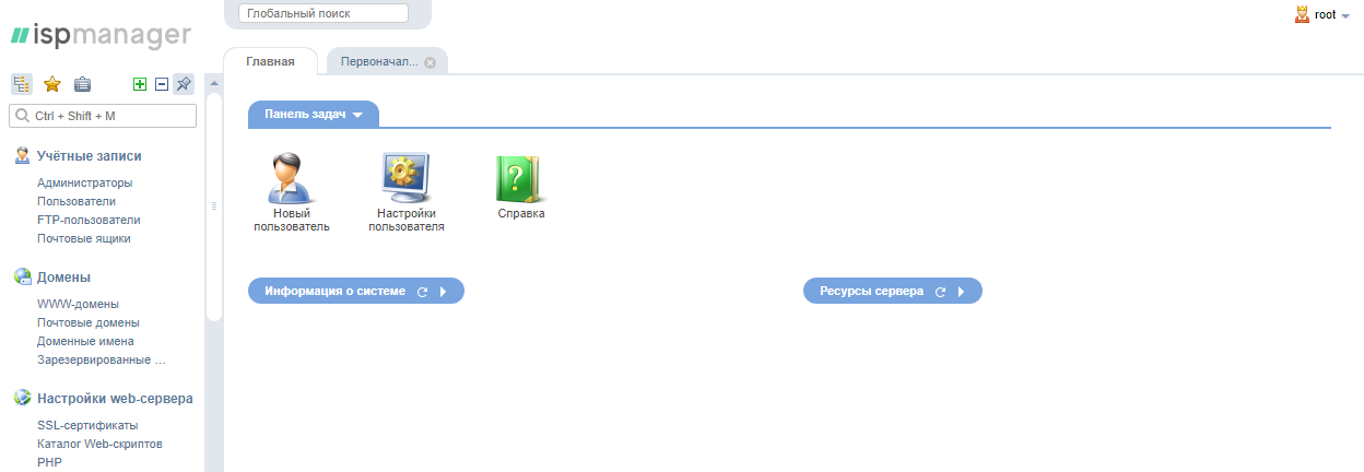 Для этого войдите в панель управления под пользователем root.