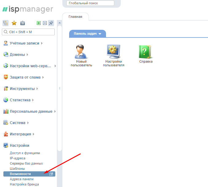 Перейдите в раздел Настройки / Возможности.