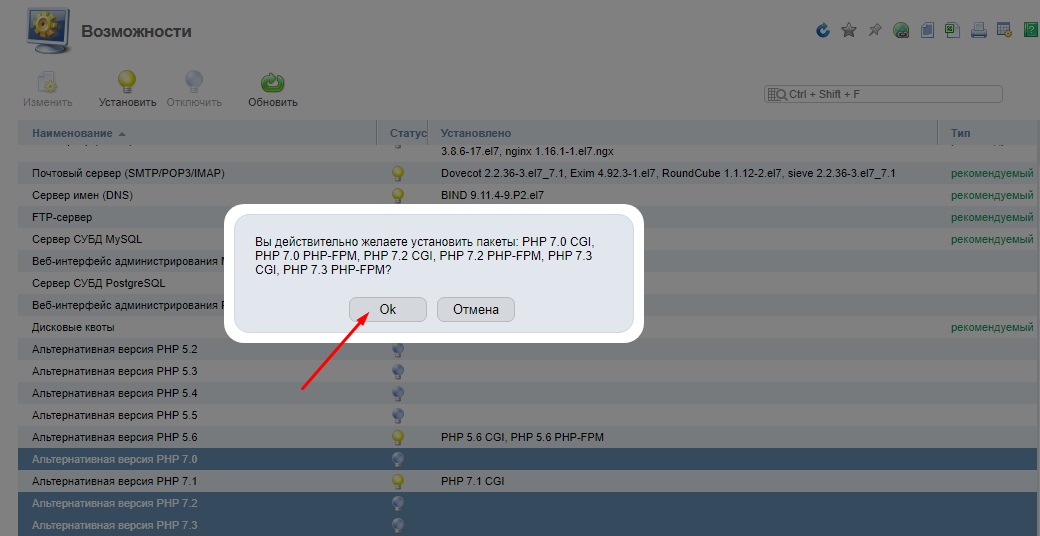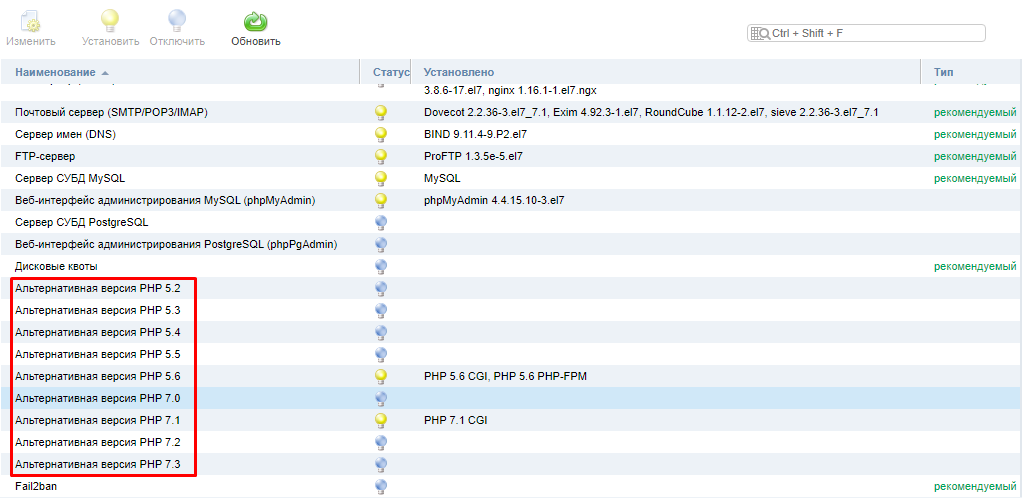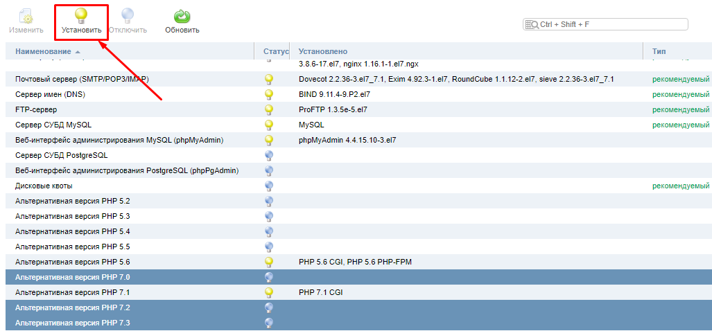 Установка дополнительных версий PHP в панели управления ISPmanager
