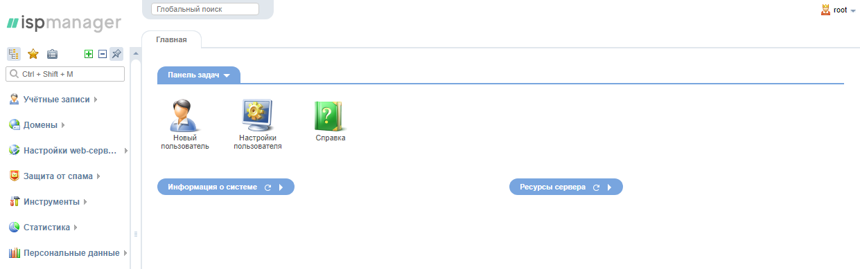 Для этого войдите в панель управления ISPmanager под пользователем root.