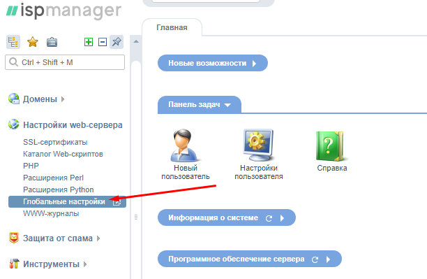Перейдите в раздел Настройки web-сервера / Глобальные настройки.
