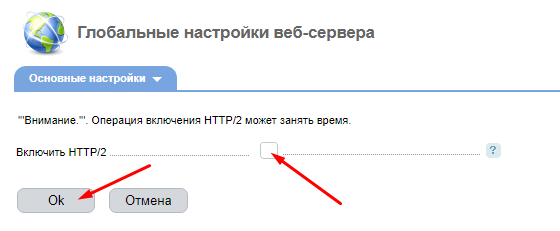 Активируйте опцию Включить HTTP/2 и нажмите Ок.