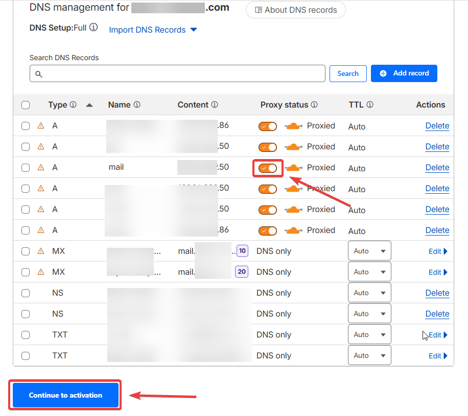 - A-записи для почты (MX) должны быть без проксирования;
