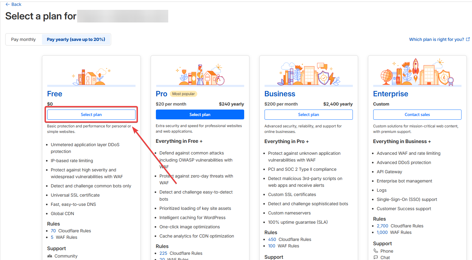 Выберите тарифный план. Для большинства задач достаточно бесплатного тарифа Free.