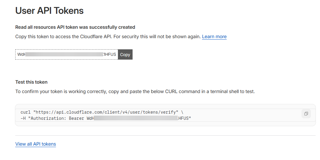 После добавления токена обновите раздел Cloudflare в панели управления.