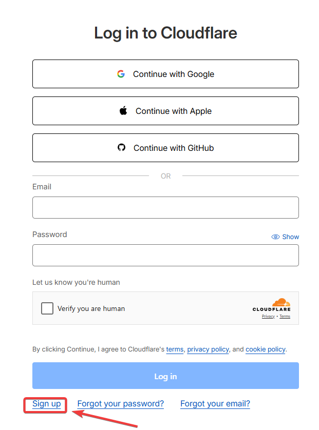 Для подключения Cloudflare перейдите на сайт и зарегистрируйтесь: