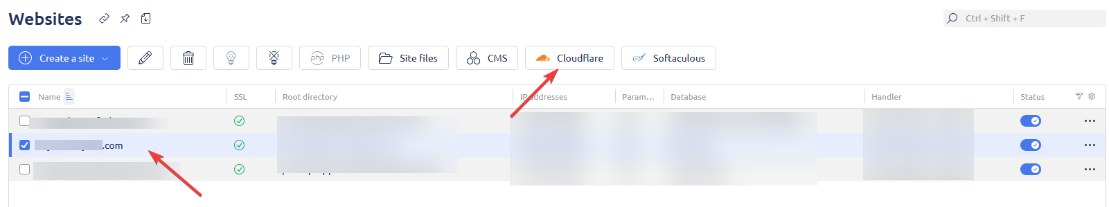 После обновления DNS вы сможете управлять Cloudflare прямо из панели хостинга.