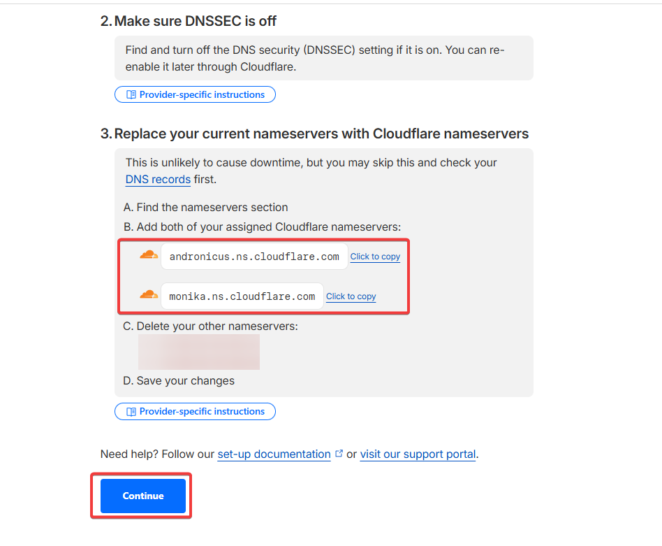 Далее измените NS-серверы домена у регистратора на те, которые указал Cloudflare.