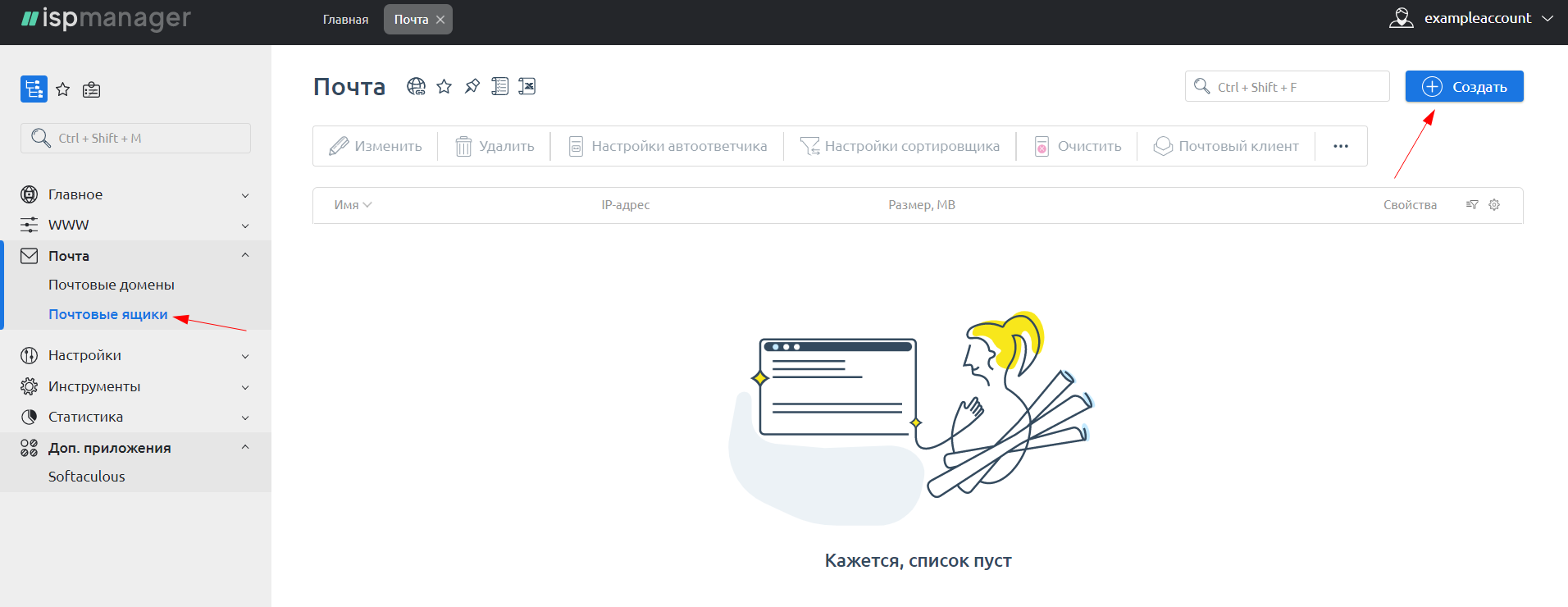 Создание почтового ящика в ISPmanager