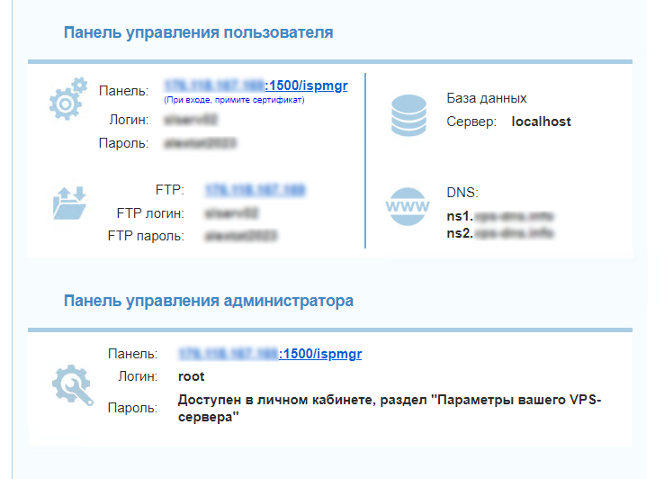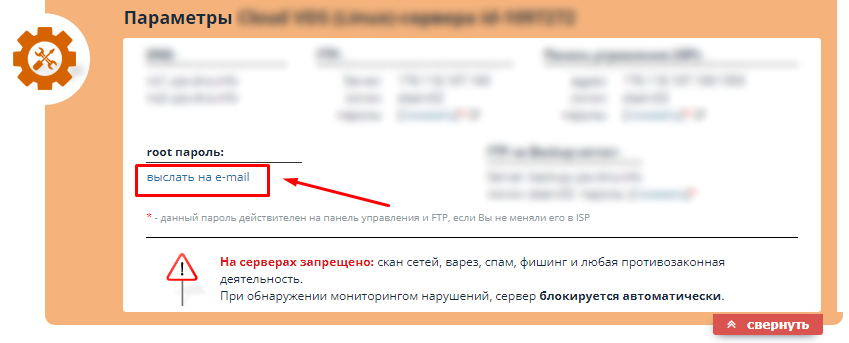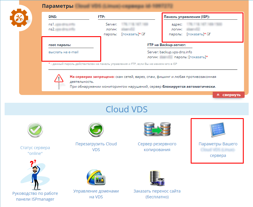 - в личном кабинете, в разделе Параметры Вашего VPS-сервера.