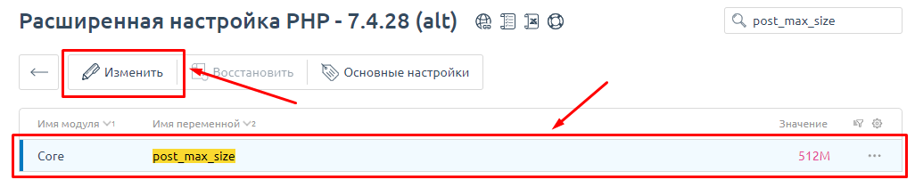 Для изменения значения параметра post_max_size перейдите в раздел WWW / PHP в панели управления ISPmanager.