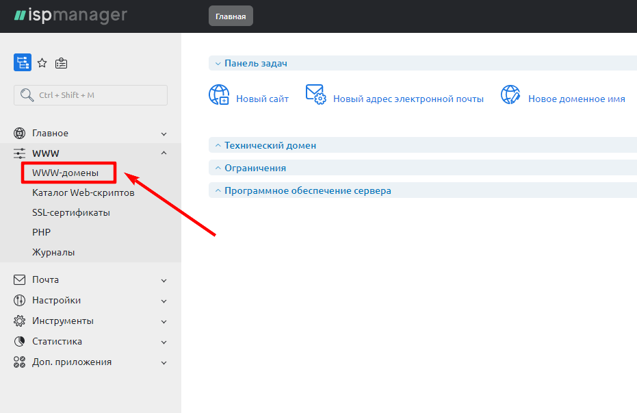 Для этого войдите в панель управления и перейдите в раздел WWW-домены: