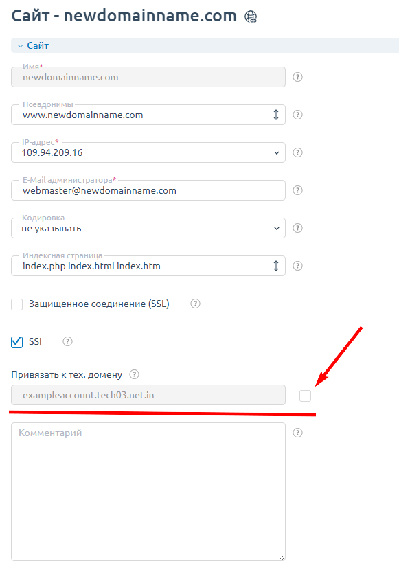 При необходимости можно привязать технический домен к другому домену — для этого повторите действия и включите параметр для нового сайта.