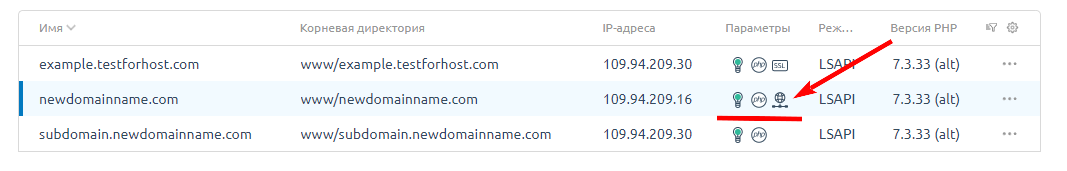 В панели управления ISPmanager можно подключить технический домен для сайта.