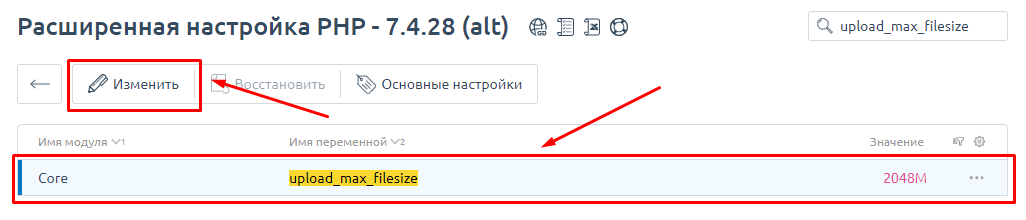 Для изменения значения параметра upload_max_filesize перейдите в раздел WWW / PHP в панели управления ISPmanager.