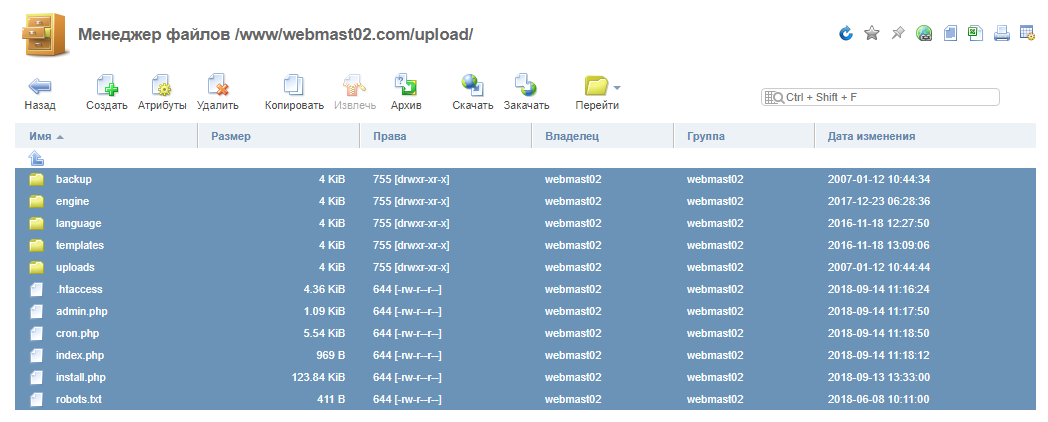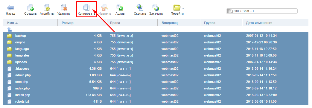 В панели управления ISPmanager можно быстро копировать или перемещать файлы и папки, что особенно удобно при работе с большим количеством данных.