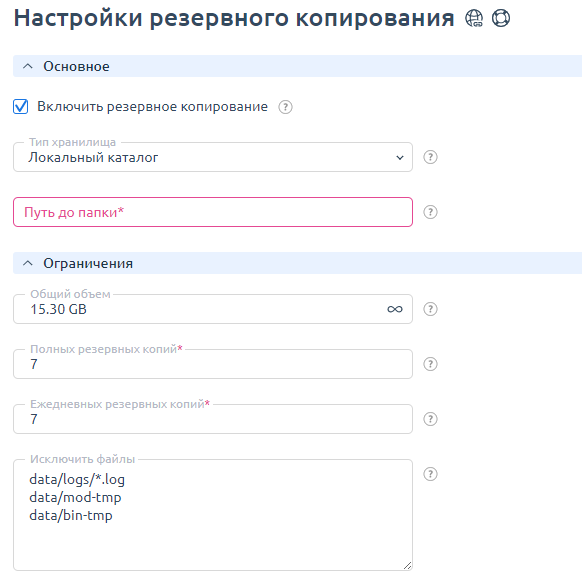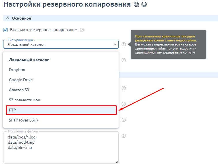 Параметры Порт FTP и Путь до бэкапов оставьте без изменений.