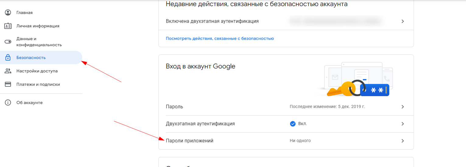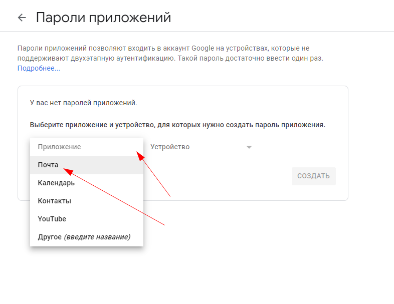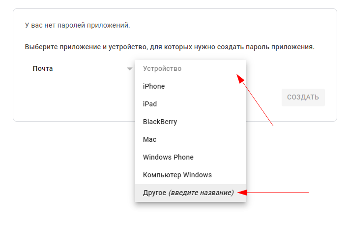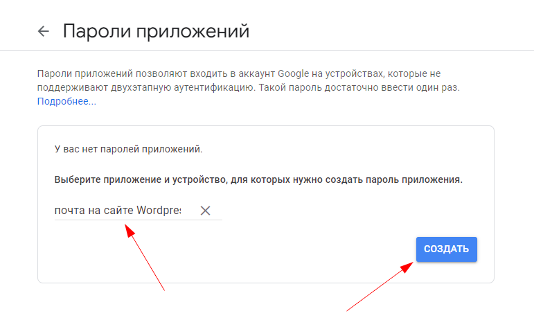 После включения двухфакторной аутентификации создайте пароль приложения.