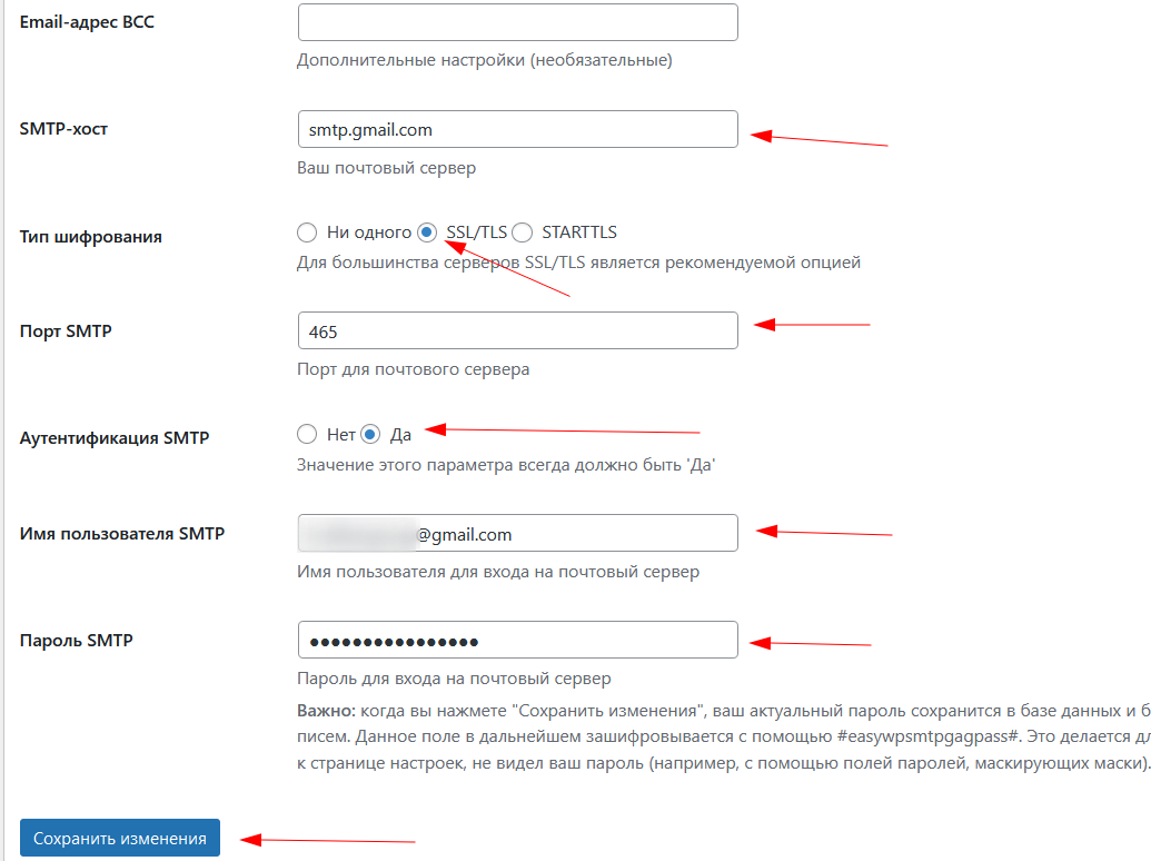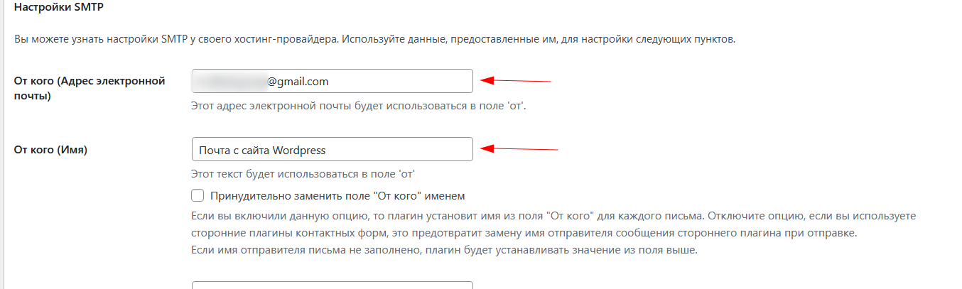 Вернитесь в настройки плагина Easy WP SMTP и заполните поля: