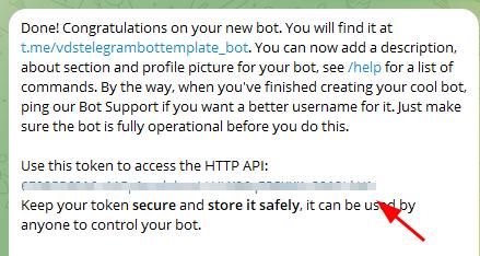 Введите имя и username бота (должен заканчиваться на _bot). После создания сохраните токен.