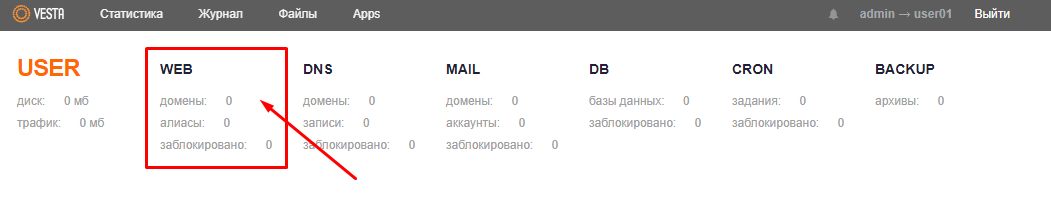 Войдите в панель управления VestaCP под нужным пользователем: