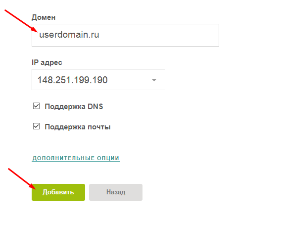 Для добавления домена на VPS необходимо выполнить два шага: