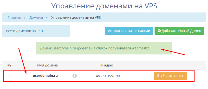 После этого домен будет добавлен: