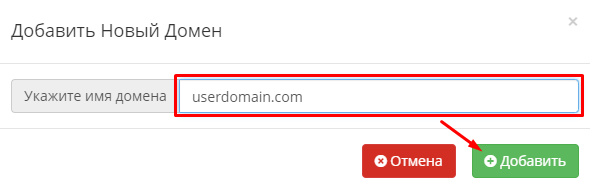Нажмите кнопку Добавить новый домен: