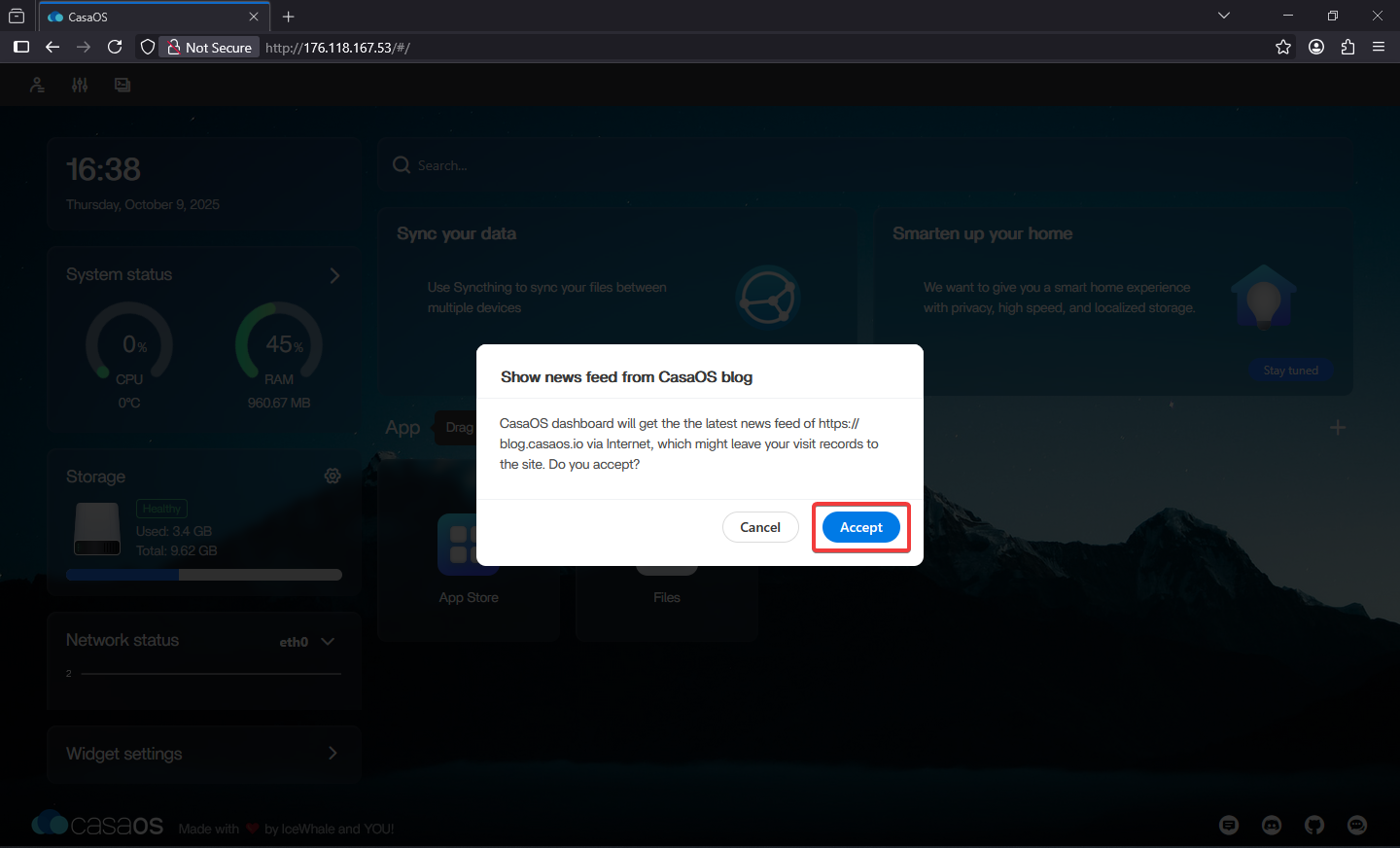 Вставьте IP-адрес в браузер и нажмите Enter.