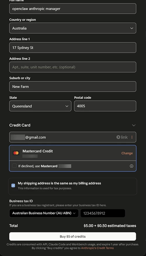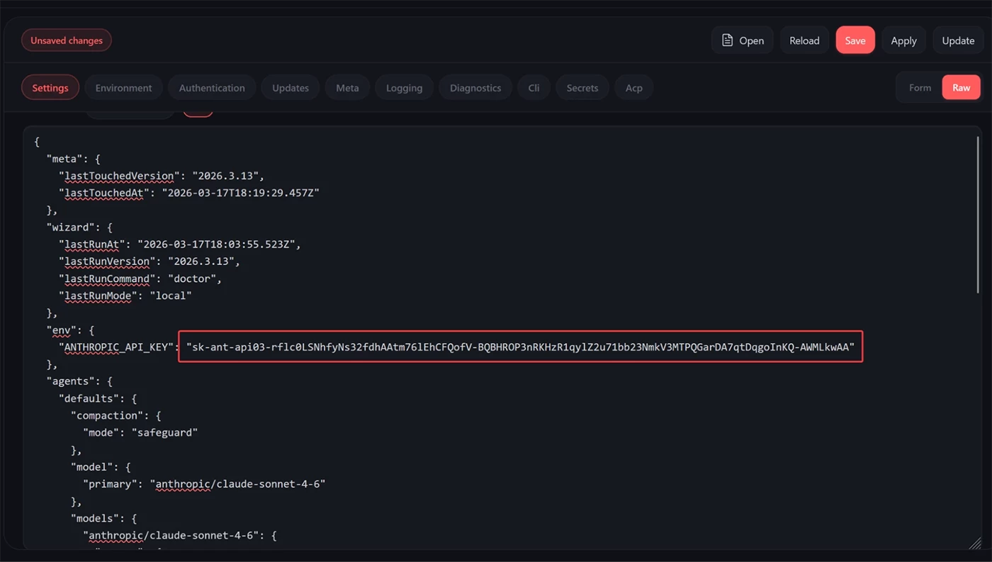 Для работы персонального агента требуется внешний AI-провайдер. В данном примере используется Anthropic Claude Sonnet 4.6.